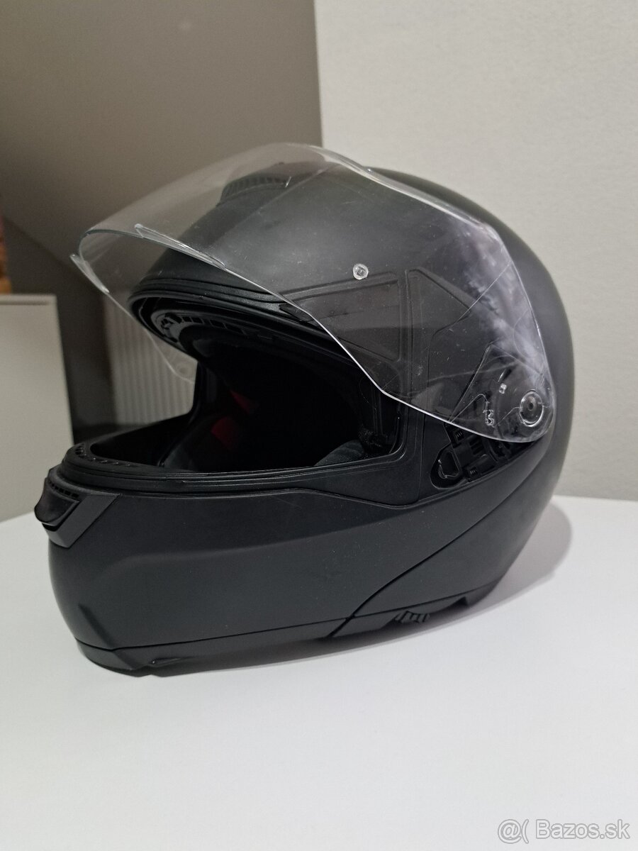 Predám vyklápaciu prilbu aj so slnečnou clonou, veľkosť M,na prilbe sú jemné známky používania ale nic hrozné,preferujem osobný odber,po dohode aj pošlem,cena 50€