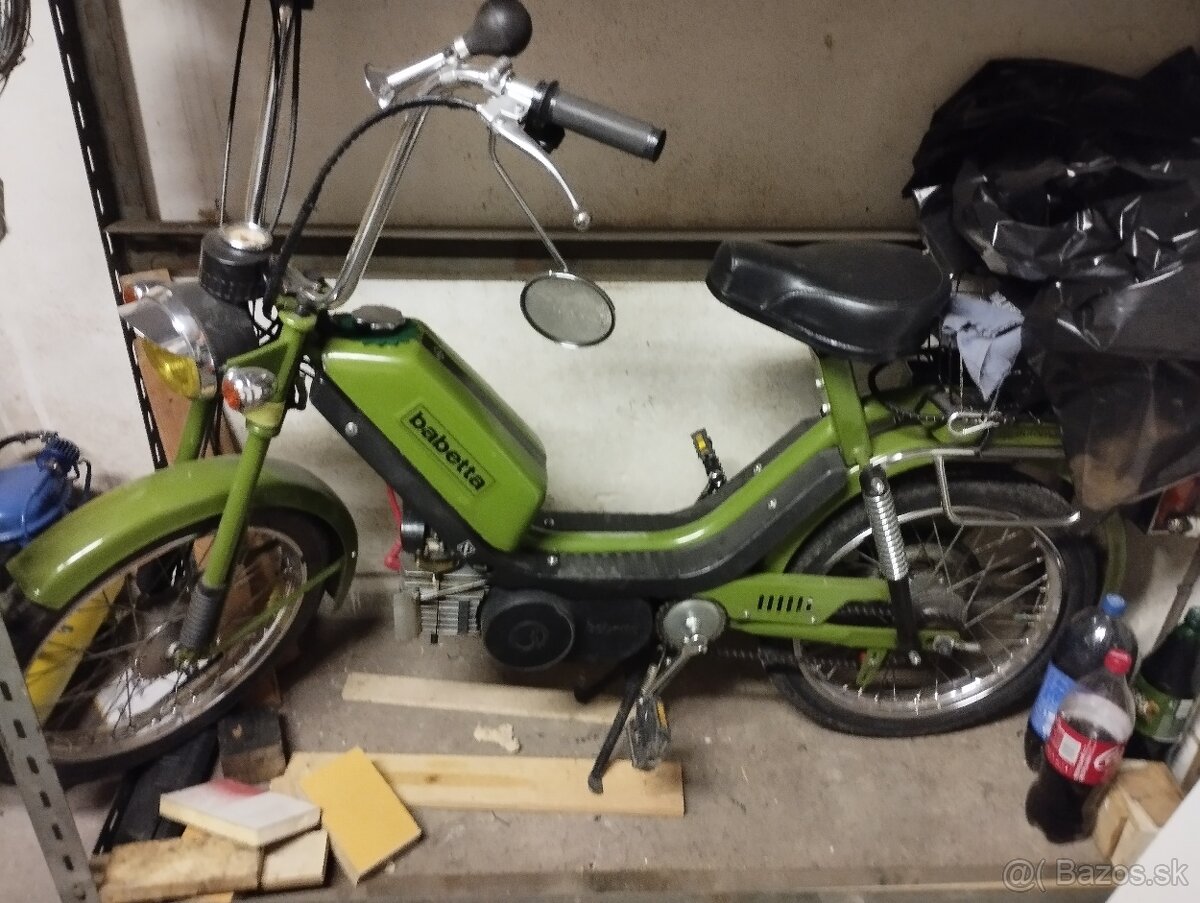 Babetta 215 - [28.12. 2025]Predám babettu original 215 jednorýchlostná, je tam veľa nových vecí a generálka motora- nová kluka ložiská výbrus. Nové zadné tlmiče,predné pružiny,chrómové špice nové zapalovanie.