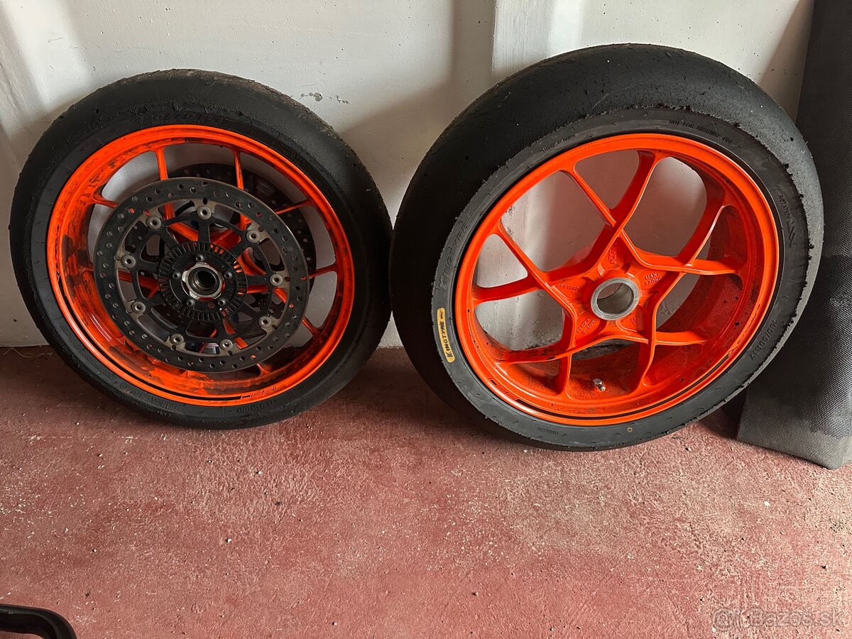 Zdravím. Predám kolesá na KTM SuperDuke. Sedia na všetky generácie. Kolesa predávam vrátane TPMS senzorov a kotúčov. Použité párkrat, mal som ich na okruh