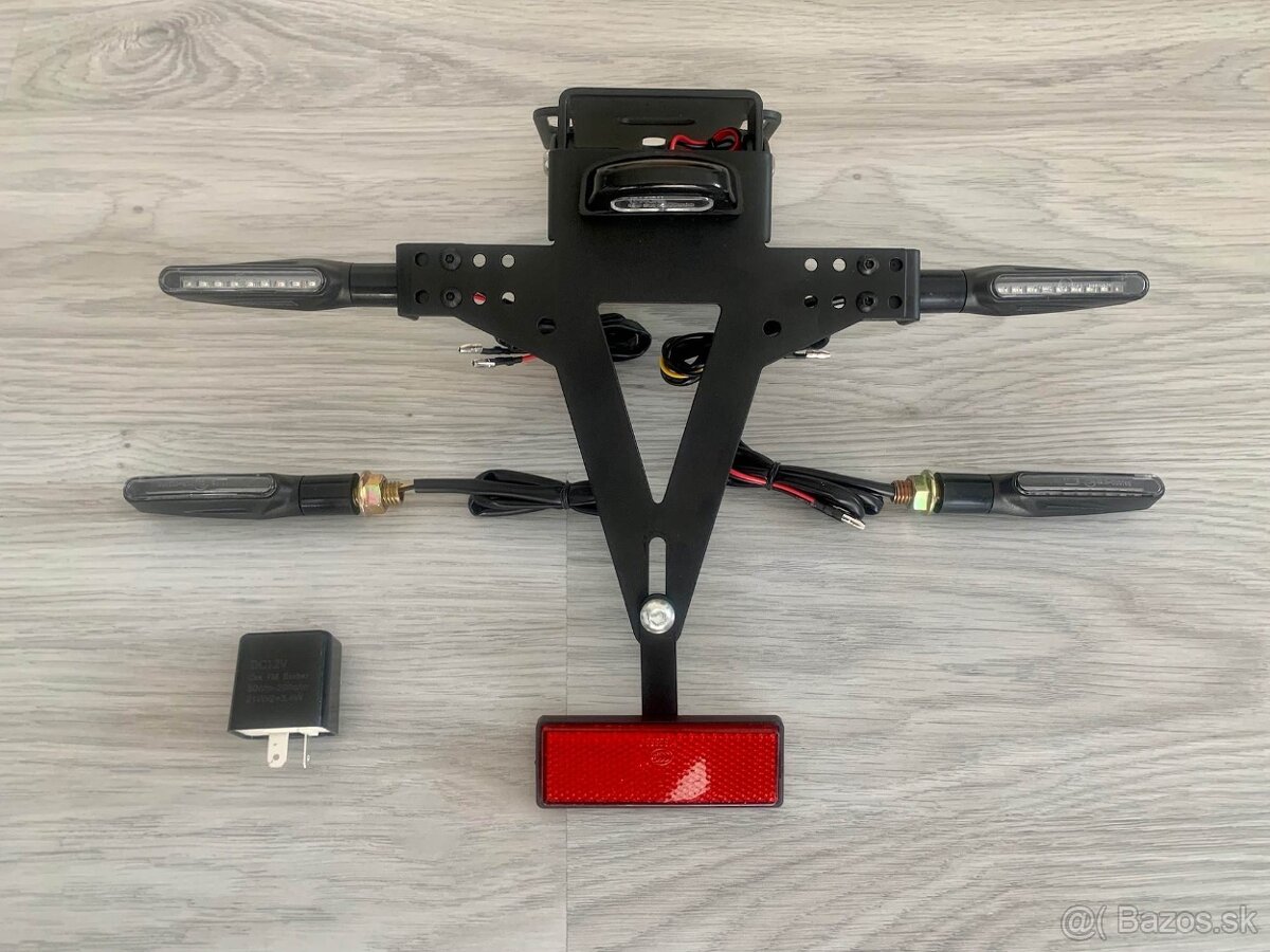 Predám univerzálny držiak ŠPZ,osvetlenie ŠPZ,LED smerovky, prerušovač pre LED a odrazové sklíčko.Všetko je úplne nové,zabalené.Celé komplet ako je na fotke stojí 79 €.Možnosť kúpiť osobytne a ceny sú :