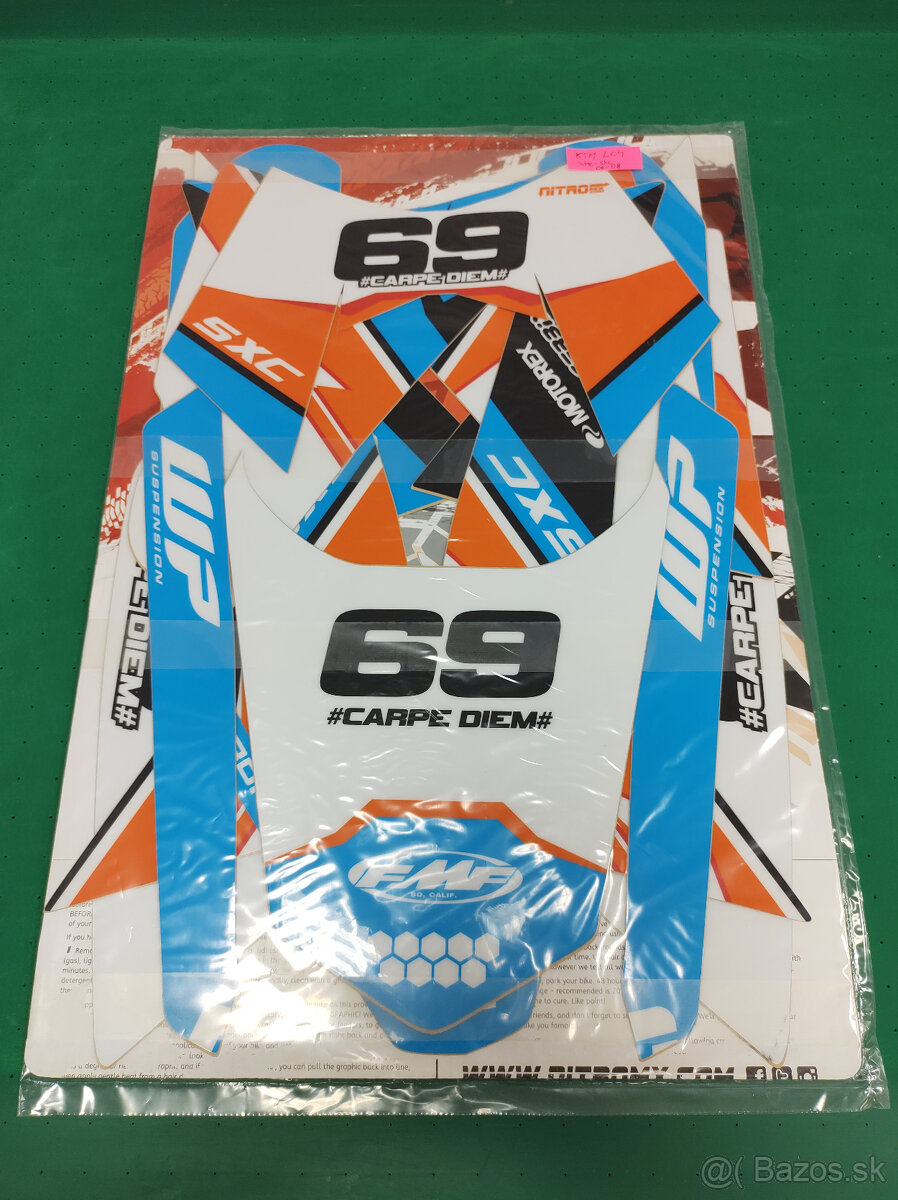 Predam novy, nepouzity, nerozbaleny polep prestiznej znacky pre KTM LC4 / SMC / SXC 2006 - 2008 s cislom 69 a menom #carpe diem#. Polep je vyrobeny z najkvalitnejsich materialov na trhu, urcenych pre profesionalnych jazdcov. Vid foto.