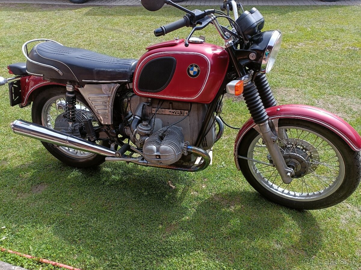 Predám BMW R75/6 - [1.1. 2026]Predám motocykel veterán BMW R75/6, rok výroby 06/1976, najazdených 22608km, pôvodný stav, originál protokol z TÜV o najazdených km, vymenený olej, nové pneu, nová brzdová kvapalina, nová brzdová hadica, nová baterka, na bielych ečv, STK platná do 02/2029, len vážny záujem