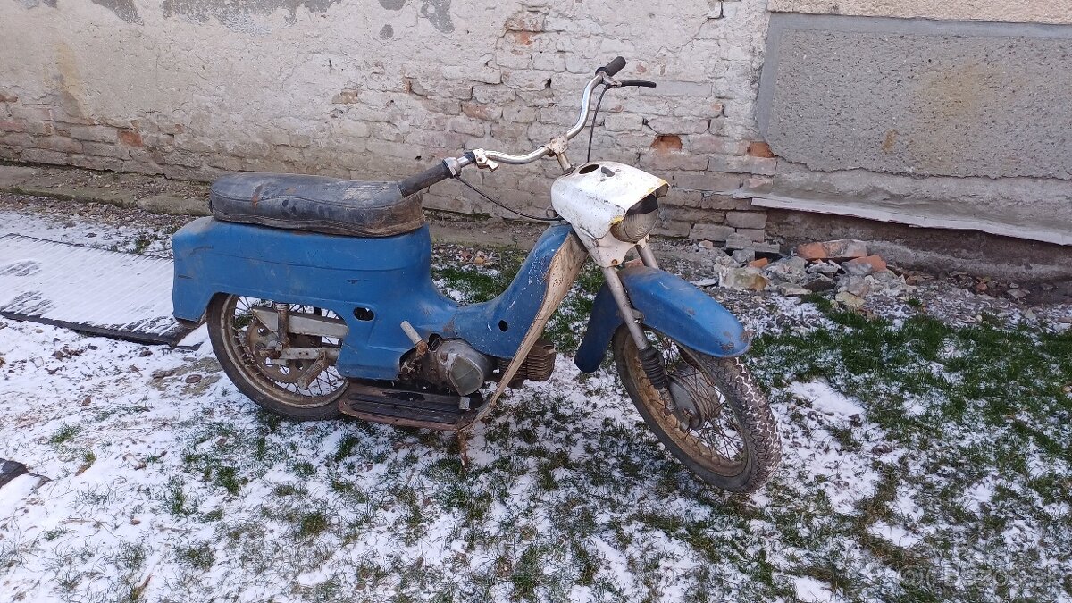 Jawa 50 typ 555 1962 - [30.1. 2026]Ponúkam na predaj malý motocykel Jawa 50 typ 555 1962. Motocykel v nálezovom stave, motor funkčný, číslo na štítku zhodné s motorom, pôvodná ŠPZ, dokonalý základ na renováciu.