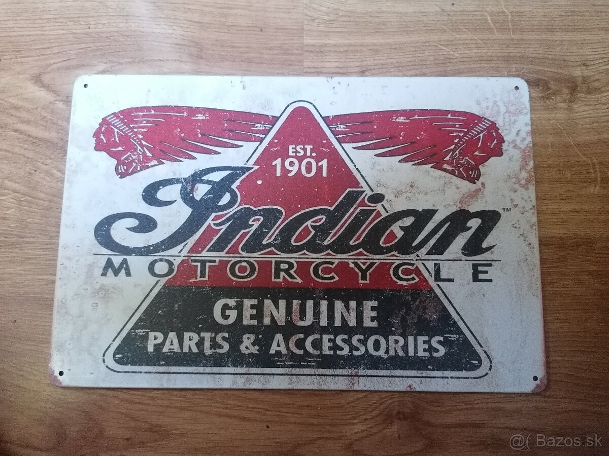 Plechová tabuľa Indian motorky - [3.2. 2026]Predám plechovú tabuľu- cedula Indian motorky. Rozmer 30cm x 20cm. Cena 9€. V prípade potreby viem poslať poštou, poštovné pri platbe vopred len 3€