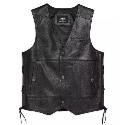 Harley-Davidson Tradition II originál kožená vesta ve velikost 2XL.Dvě kapsy na cvoky zepředu boční praktické šněrování což umožnuje upravit si vestu dle postavy.Vesta je nová nebyla použita pouze odzkoušena a uložena.Art.Nr. 98024-18VM.Bez jakého koliv poškození.Možno nosit i přes bundu