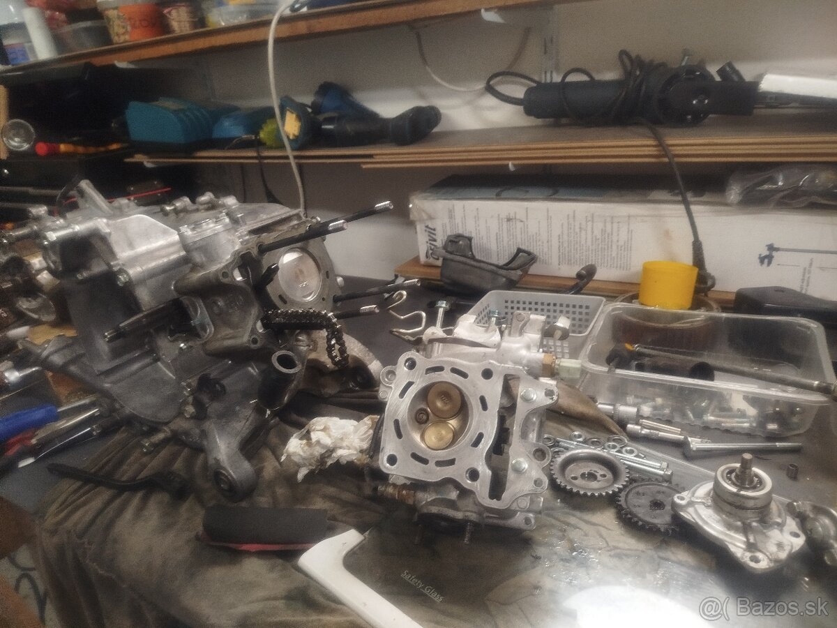 Motor bol poleny komplet všetko prezreté a vyčistené,precízne skladaný a skontrolované všetky ložiská,ojnica,piest,krúžky nanovo nahodené,meneny napínač reťaze,tesnenia na hlave a rozpolene a skontrolované ložiská v prevodoch.aj motor aj prevody nový olej plus nová chladiaca a sviečka,nastavené ventily,gufera suché☝️motor je možné si prísť pozrieť,vyskúšať(zatiaľ,kym nepôjde rám do šrotu 🤷) motor predávam s chladičom no bez výfuku☝️v prípade potreby pošlem aj súkromne video s chodom motora☺️