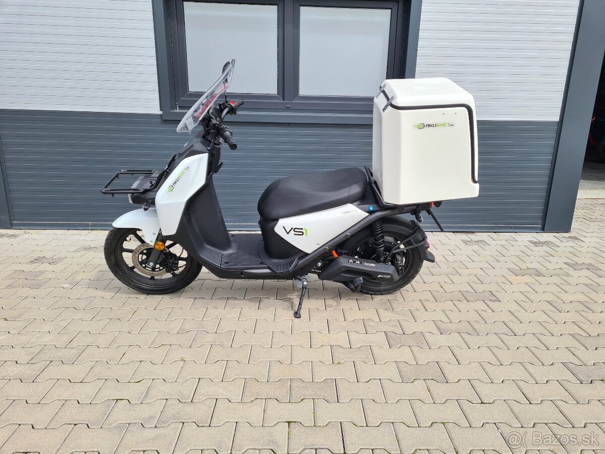 Elektrický skúter Super Soco VS1 - [25.1. 2026]SUPER SOCO VS1 je nákladovo efektívny, ekologický a účinný spôsob dopravy, ktorý poskytuje celý rad výhod pre firmy od donášky jedla cez kuriérske služby až po prepravu v areáli firmy. Vďaka pôsobivému výkonu 4,8 kW, max. rýchlosti až 90 km/h, max. dojazdu s dvoma batériami až 160 km a výnimočným úl ...