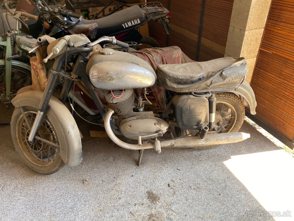 Zdravim, predam vyobrazenu jawku. Bola kupena na renovaciu ale plany sa zmenili tak posuvam dalej, mam k nej masku originalnu, aj kastlik panelkovy pretoze jeden na motorke je z kyvacky, chybaju podsedlove plechy, stav ako na foto, nalezovy..