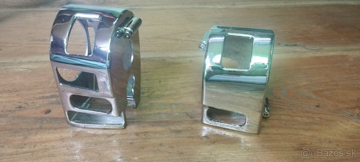 Predám nové chrómové kryty prepínačov na riadidlá. Kupoval som to na yamahu dragstar 1100 ročník 2002, ale napsuje mi to z dôvodu že nemám automatické zapnutie svetiel po štarte. Na ročník 2004 a vyššie by to malo pasovať. Možno to bude pasovať aj na iné motorky. Kupoval som to už dávnejšie za nejakých 150€, len pre porovnanie cena nových: https://www.chopperstyle.sk/p/4161/chromovane-krytky-prepinacov-pre-kawasaki-vn1600-classicnomad