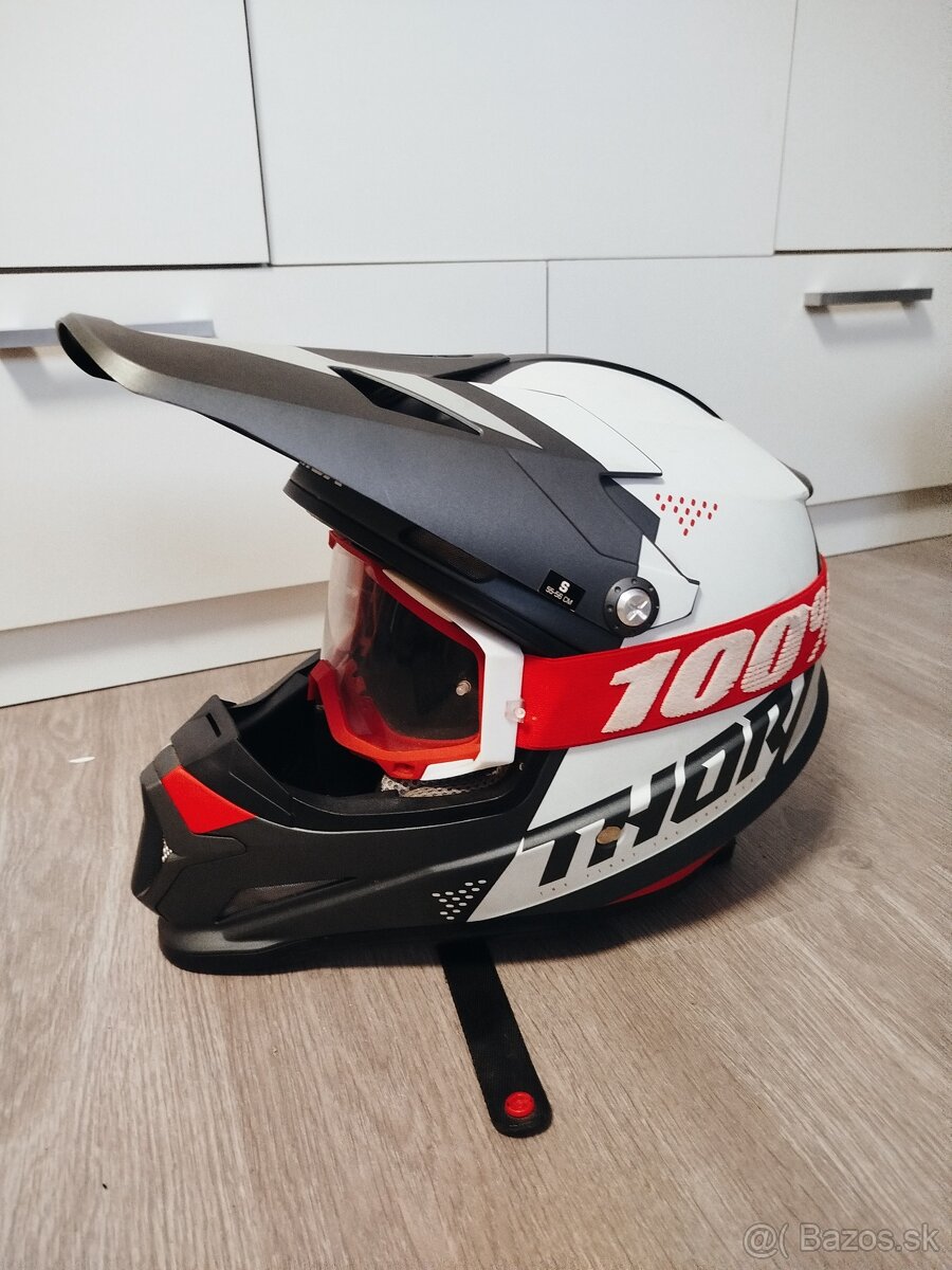 Predám málo používanú prilbu , helmu značky Thor. Spolu s okuliarmi 100% . Veľkosť S.