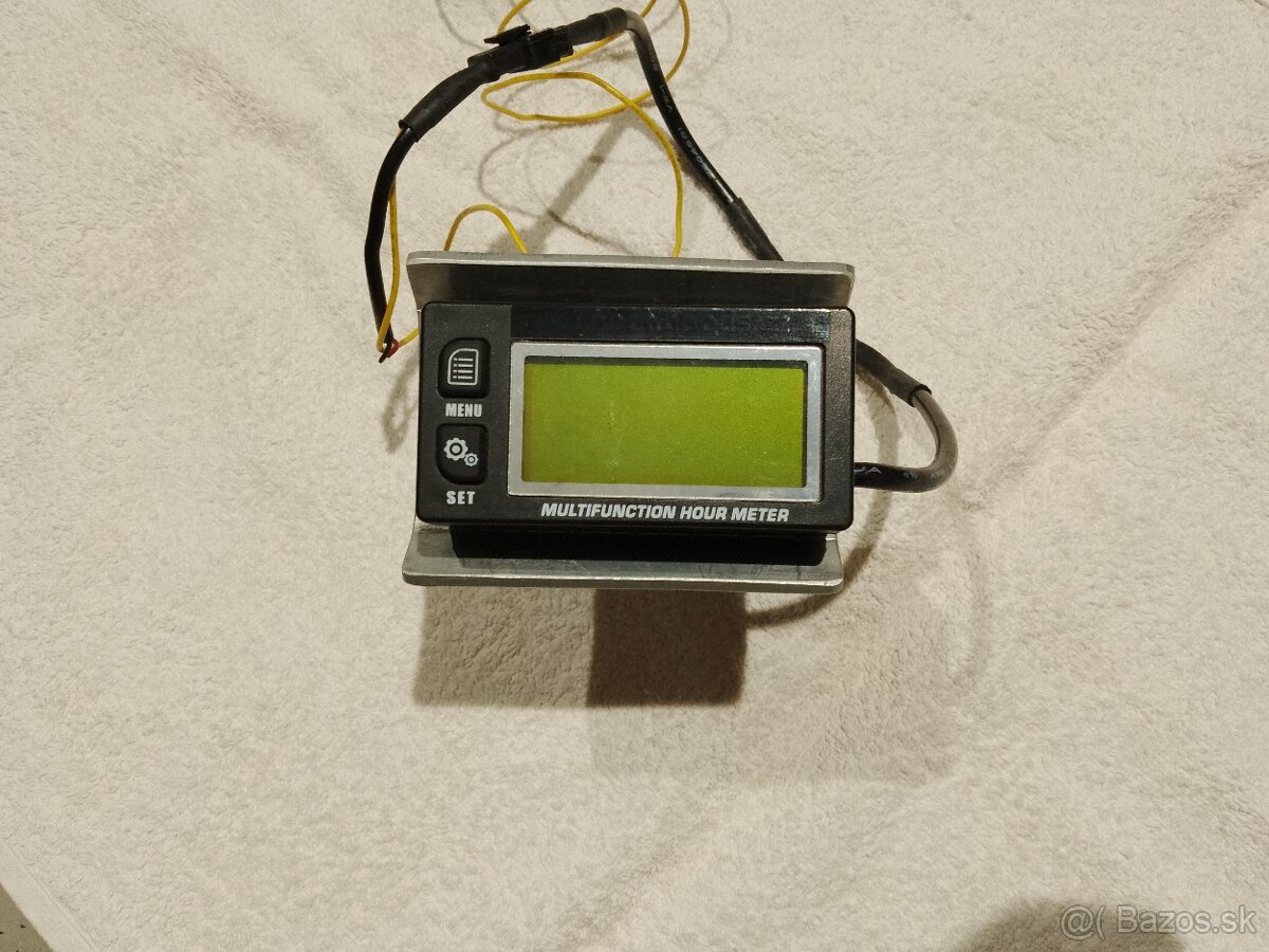 Ponúkam kompaktný vodotesný merač motohodin napätia otáčok motora čas servisné intervaly atď zelené podsvietenie displeja napájanie 12v a žltý drôt omotat 3x na kábel k sviečke