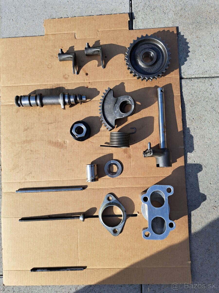 Predám originál české diely motora na Jawa 350 typ 638, 639, 640, štartovací segment s pružinou 20 €, hriadeľ radenia 20 €, štartovacia hriadeľ (tisíchran v poriadku) 30 €, kované vidličky 2 ks za 20 €, tyčky všetky 5 €, hrdlo sania 15 €, príruba karburátoru 5 €, púzdro spojkového koša s podložkou 15 €, matica kľuk. hriadele s náhonom 5 €, dvojradové primárne reťazové kolo kľukovej hriadele už nie je. Píšte alebo radšej volajte čo potrebujete.
