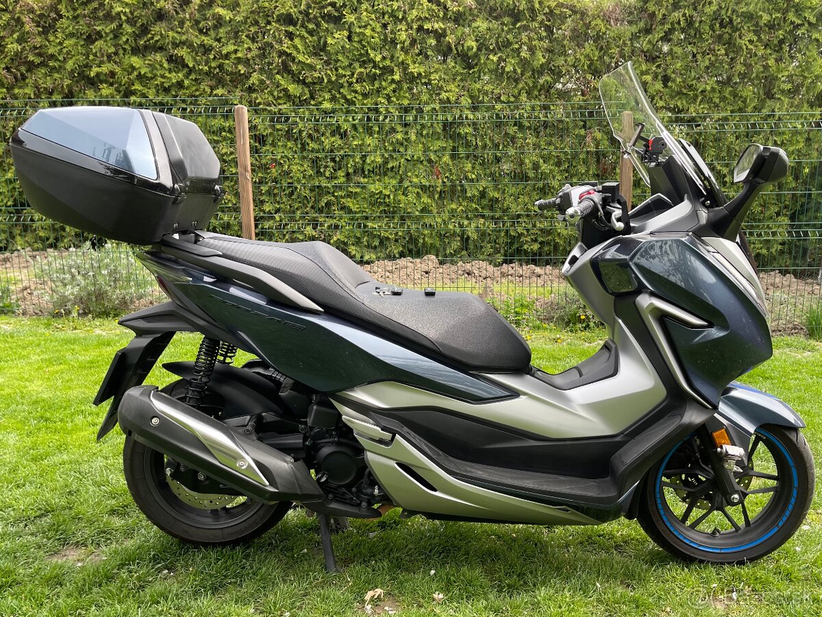 Predám skúter Honda Forza 300, rok výroby 2020 v dobrom stave. K motorke je 2x kľúč, originálny veľký kufor v hodnote 400€, vysoké plexi GIVI, servisná knižka. Skúter má bezkľúčové štartovanie, elektricky nastaviteľnú výšku predného plexiskla, ďalej má dorobené predné led svetlá a držiak na mobil. Je na nej vymenený variátor za Malossi takže motorka má lepšie zrýchlenie a spotrebu len 3,5L-4L/100km. Motorka je pripravená na sezónu, má čerstvo vymenený olej. STK platná do 3/2026. Stačí sadnúť a jazdiť. Najazdených 57000km. Predávam ju, pretože už mám inú motorku.