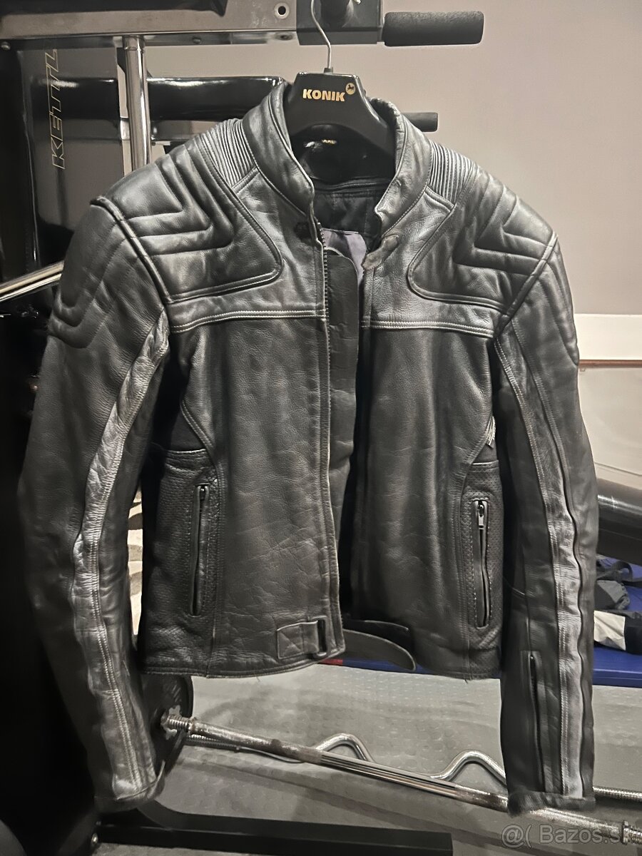 Kožená bunda pánska S - [14.2. 2026]Pánska bunda na motorku MOTOMOD, kvalitná kozena s vyberatelnou vložkou, asi cca velkost S, rozmery merané zvonku bundy: šírka cez 2x53cm, dĺžka rukáva od ramena 66cm, dĺžka bundy 60cm, bez chranicov