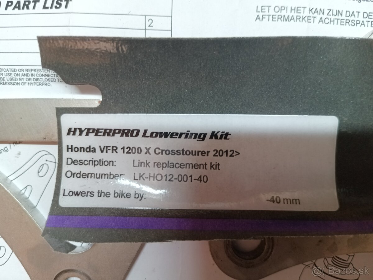 Predám Set na zníženie. Vhodný na motocykel Honda Vfr 1200 x crosstourer. Zníženie o - 40mm. Diel bol len vyskúšaný. Nový stál 80euro. Posielam na dobierku-packeta, posta alebo platba vopred a s kuriérom