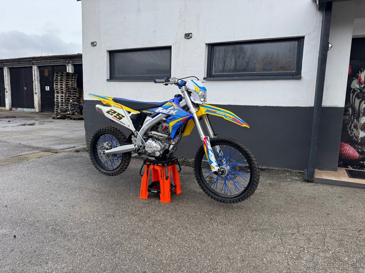 Mikilon MZK 250RR 21/18 - [21.2. 2026]Full cross Mikilon MZK s elektrickým štartérom, štvortaktným motorom Zongshen s objemom 250 cm3 pre teenagerov a dospelých od 175 cm. Enduro na kolesách 21/18 "s manuálnou 5 stupňovou prevodovku, športový výfuk s úchvatným zvukom, predné i zadné hydraulické kotúčové brzdy (zadná-nožná), masívne pred ...