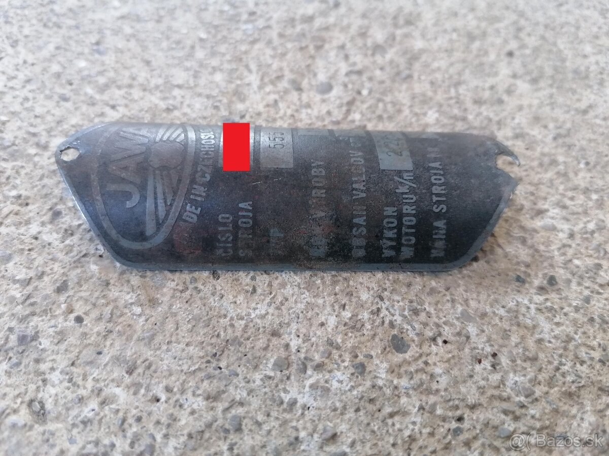 Predám originál pôvodný štítok na Jawu 555. Rok výroby 1961. Originál pôvodný v slovenčine. Vin číslo neposkytujem, uvidí ho len kupujúci, je samozrejme originálne a pekne čitateľné. Cena 45€