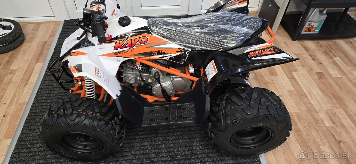 Predám novú detskú štvorkolku KAYO AT110. Motor 4takt, 5.1kW, autonat. 93kg