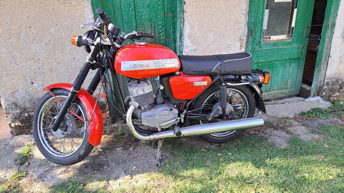 Jawa je plne pojazdná, výfuky a ráfiky bez korózie a preliačin, nový poťah na sedadle, nová batéria, olej v prevodovke, semeringy v predných tlmičoch aj olej.Tachometer aj otáčkomer ukazujú.Všetky svetlá svietie ako majú.Bez dokladov, čísla rámu a motora sa zhodujú s orig.štítkom.