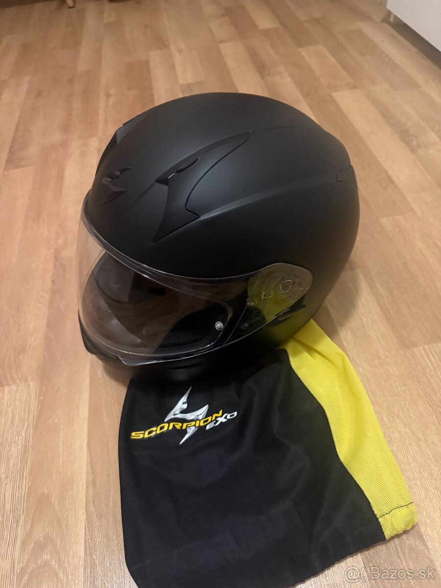 Predám prilbu scorpion exo390 vo velkosti XL a farbe matná čierna. Prilba bola využivaná len pokial som nedokončil vodičak. Odvtedy len zaberá miesto. Prilba je čistá, stále v nej nosená kukla. Jediný nedostatok su menšie oderky na zadnej časti (vid foto)