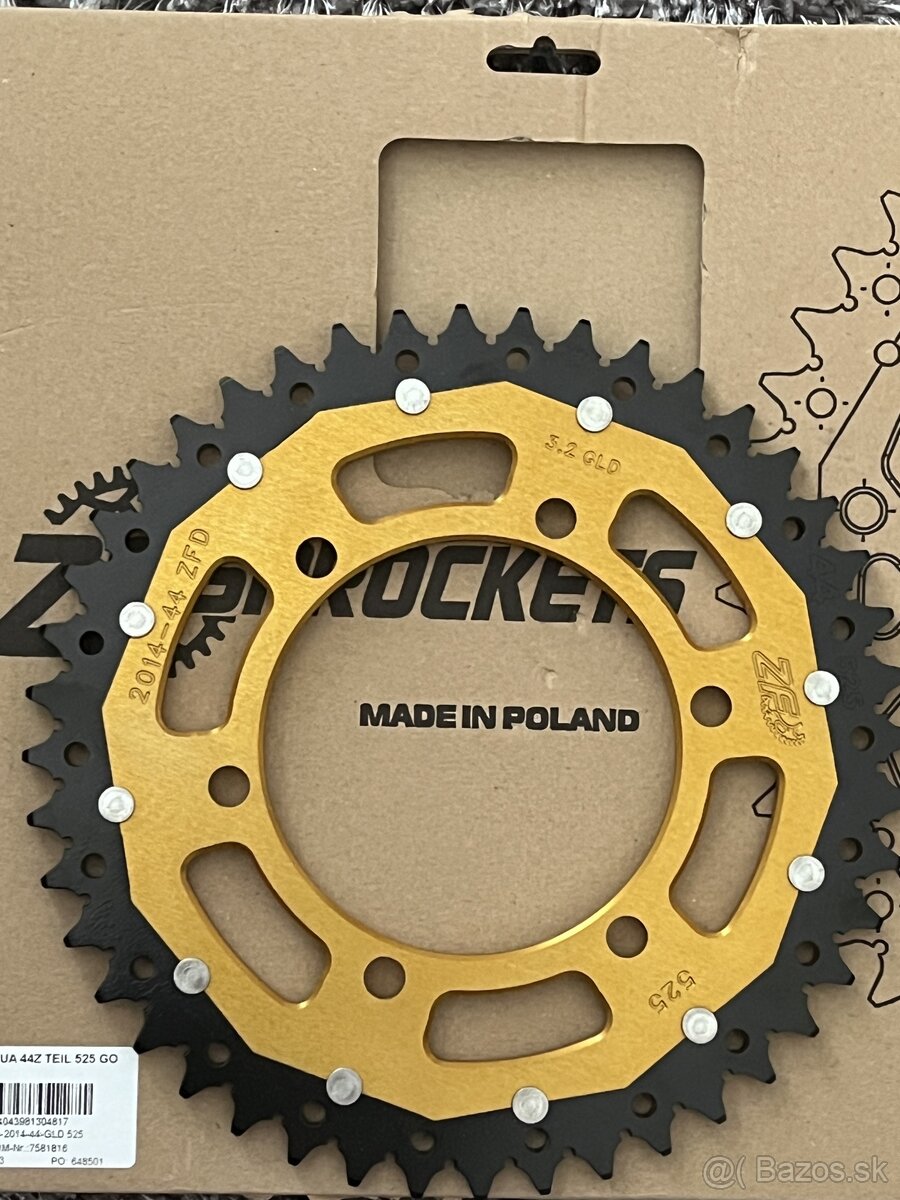 Predám nové ozubené koleso značky ZF Prorockets, vhodné na motocykel Triumph Scrambler 1200. Zadné ozubené koleso reťaze je vyrobené z hliníka a ocele v zlato- čiernom prevedení. Dôvod predaja nevhodný darček. Možná dohoda