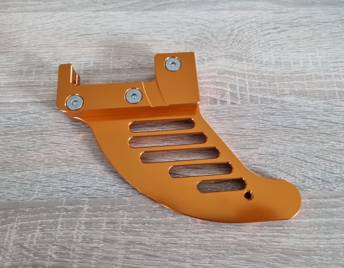 Chránič na brzdový kotúč pre ktm exc sx a exf-f 250 350 450 500 525 530 . Pre roky 2004 - 2022, oranžový, materiál dural. Fotky reálne.