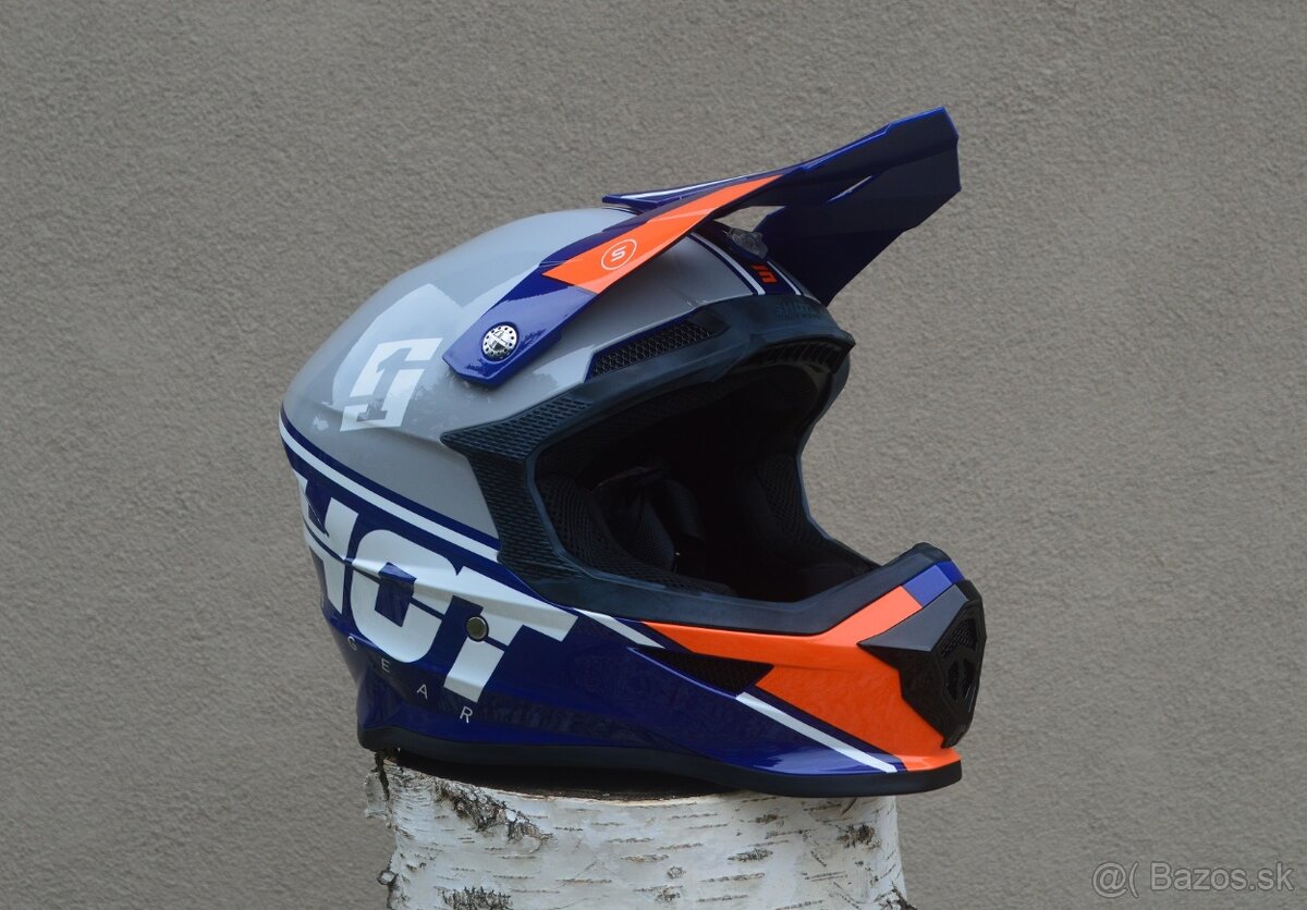 MX shot prilba sivá modro oranžová