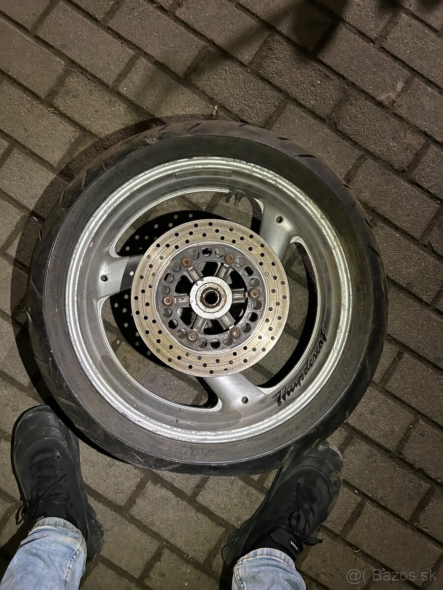 Koleso je aj s kotúčom a osadením s dobrou rozetou. Tak ako je na foto. Pripadne vymením za predné na Honda transalp ( R21 dvojkotuč ), môže byt aj z inej moto ale veľkosť R21 a dvojlotuč.