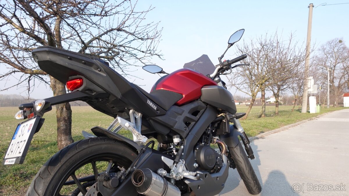 Predám motorku **Yamaha MT-125**, rok výroby **2015**, výkon **11 kW**, nájazd **24 000 km**, **Maximálna rýchlosť je približne 125 km/h**.