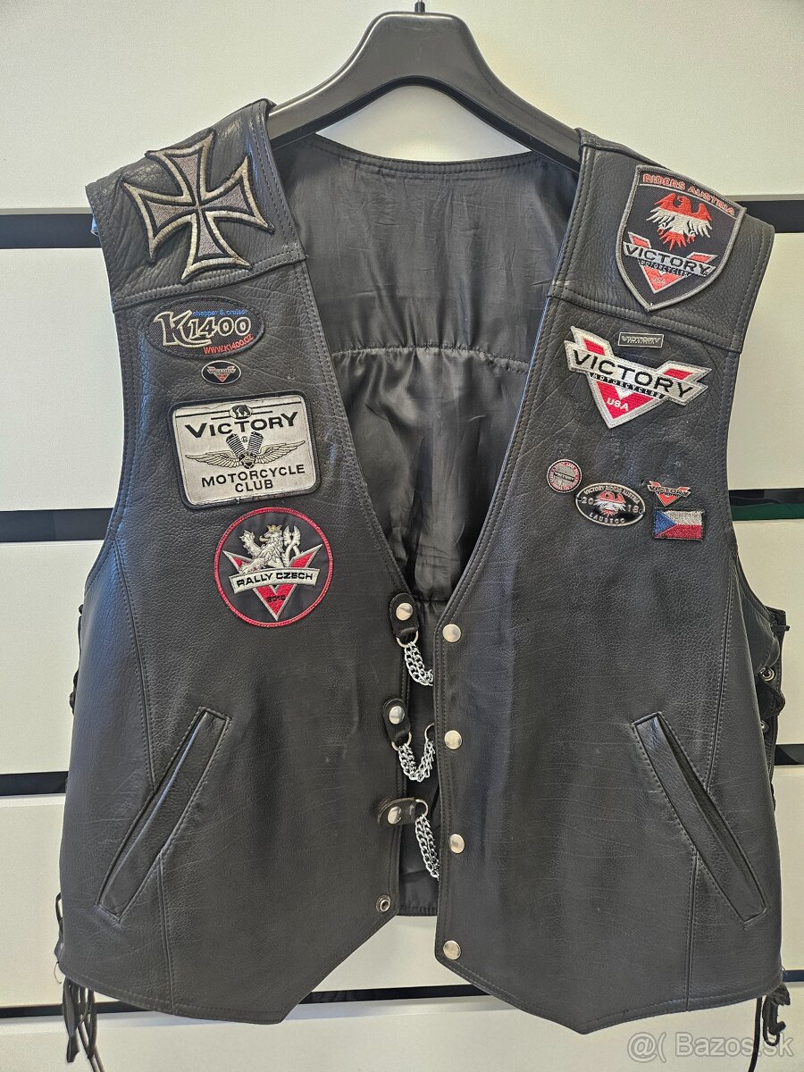 Prodám koženou vestu s motivy Victory velikost XXL. Na boku se dá ještě povolit, není spodní řetízek tak jak je na fotce. Prodám za 100E, což je hodnota nášivek a odznaků. Prodal jsem motorku.