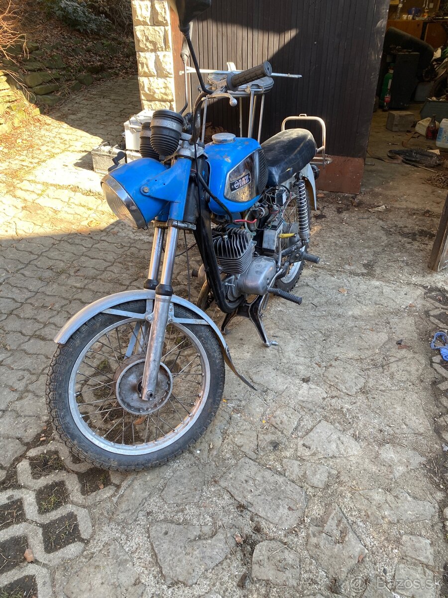 Predam tuto mz v dost zachovalom stave chyba sklicko tachometra retaz kryt retaze a nahon tachometra s lankom svetlo zadne mam cele k tomu je k tomu krabica dielov da sa nastartovat motor ma pekny chod nikde nic netecie treba dopojit svetla kable tam su cena 800€