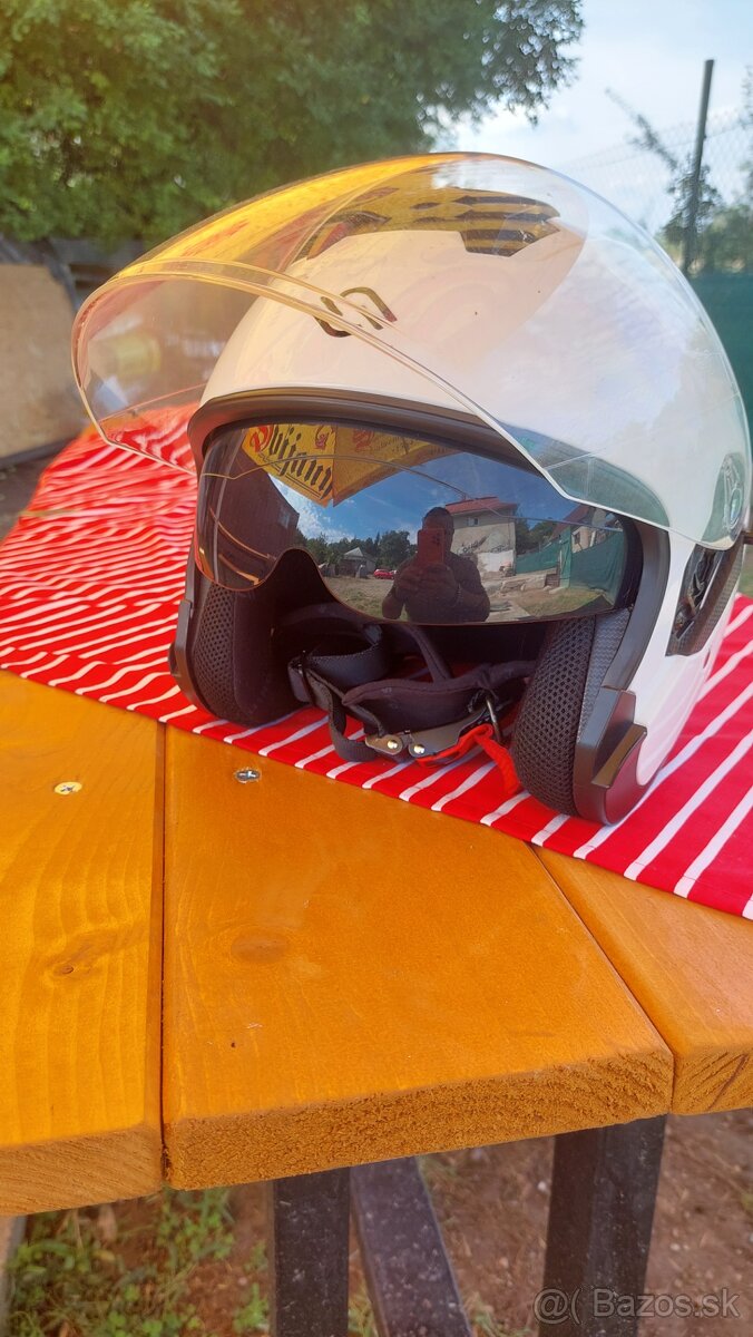 Predám málo používanú motorkársku prilbu Shiro SH-451, biela, veľkosť XL 61cm. Dôvod nesedí mi veľkosť. Bez poškodenia.