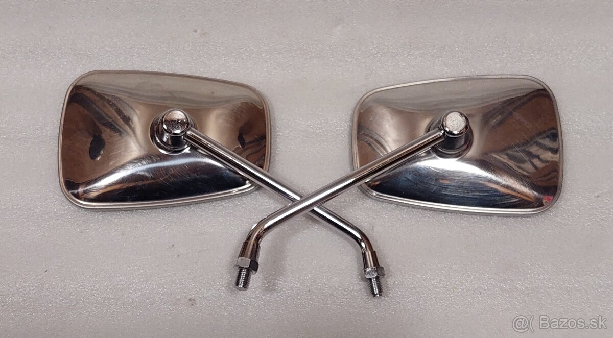 Predám spätné zrkadlá na motocykel. Sú to originály zo Suzuki Intrudera. Závit M 10 pravý. Chróm nie je poškodený, ale vidieť známky používania. Sklá sú panoramatické, čisté, bez zrkadlovej korózie.