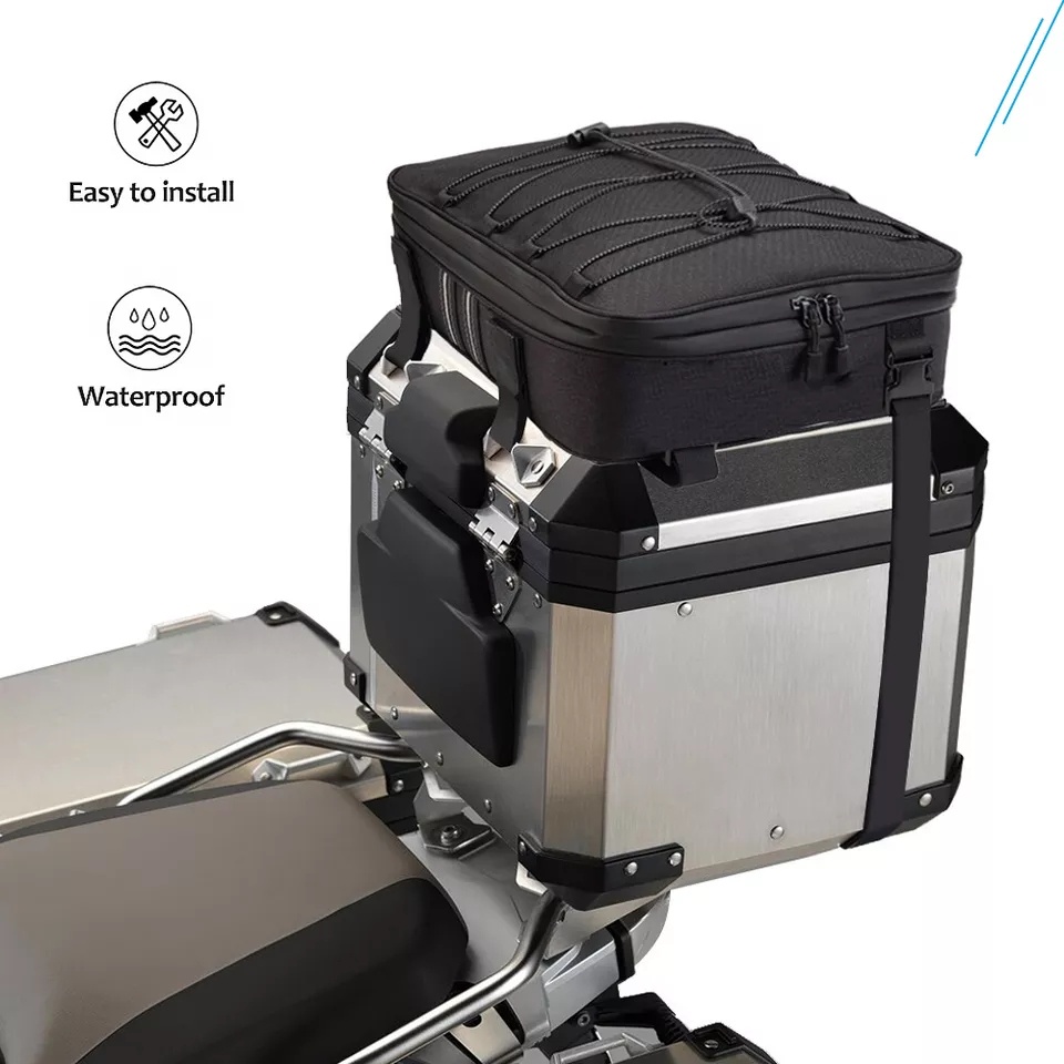 Predam vonkajsiu tasku na hlinikovy kufor original pre moto BMW GS 1200 a 1250 GS Adventure.Taska urcena na Top case s moznostou dalsieho zvysenia kapacity roztiahnutim.v baleni popruh a nepremokava plastenka.pevny a odolny material.v pripade zaujmu mam aj cely komplet 3 nastavcov.pozri moje dalsie inzeraty.