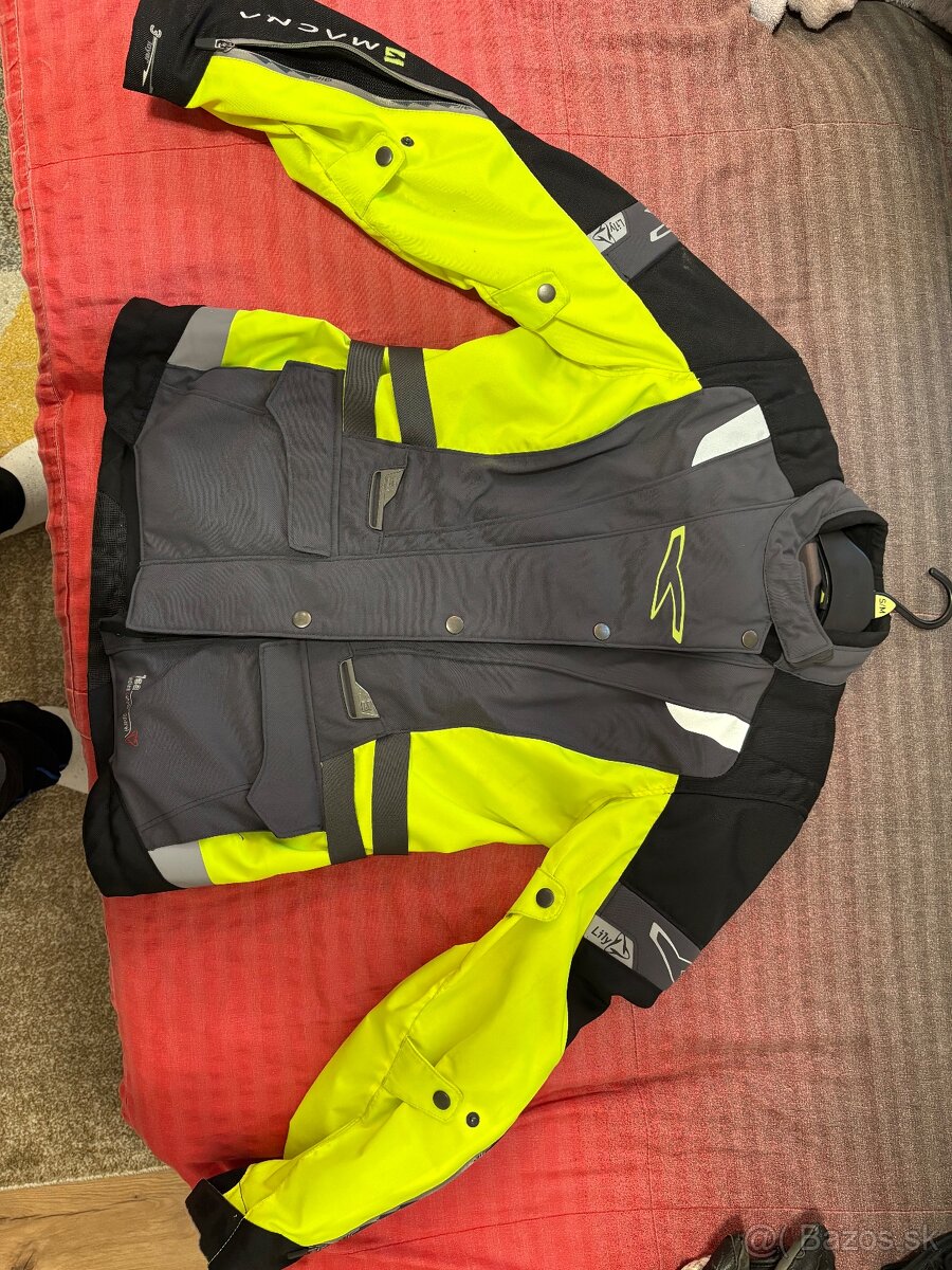 Predám motorkársku bundu s chranicami ramien, lakťov a chrbta. Bunda obsahuje odnímateľnú tepelnú vložku a vodeodolnú vložku - 3 vrstvy. Bunda je vyrobená z vysokopevnostných vlákien odolných proti pretrhnutiu a šúchaniu. Ventilačné otvory sú samozrejmosť. Veľkosť dámske M - množstvo sťahovačov na utlejšie postavy. Chemicky vyčistená.