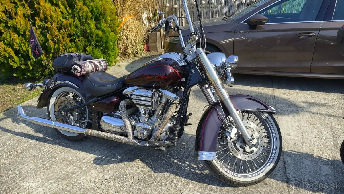 Predám krásnu Yamahu Wildstár XV 1600 A 46,3 kW v štýle Chicano stk do 8 MES.2008.Krásna silná mašina s krásnym zvukom,, rybiny,. Pripravená na sezónu. K motorke je aj druhá sedačka aj druhé výfuky ešte nepoužité.Pneu 80 per s bielym lemom. Predná 11.Rádio,USB