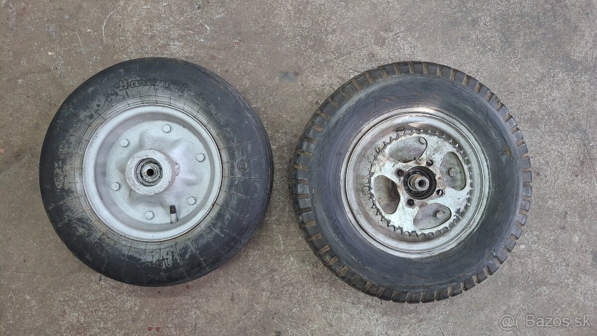 Predám podomácky upravené kolesa 16x4, kolesa boli upravené tak aby sedeli na rám jawa pionier 20, 21, 23