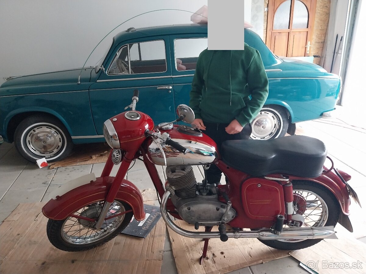 Jawa 250 353 1958 ambasádor s TP a Spz - [22.3. 2026]Predám Jawu 250 353 kyvacka v prevedení ambasádor rok výroby 1958, pôvodný stav patina, motorka si zaslúži len šetrné vyčistenie a oživenie pôvodnej farby, motor sedí so štítkom, platný tp a spz, viac info na tel čísle