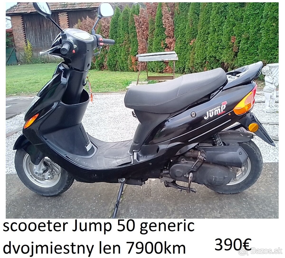 predám maximálne zachovalý,plne funkčný skúter Jump 50 generic,sú k nemu rakúske papiere,dá sa prihlásiť -možnosť vidieť aj kúpiť v bazári-Partizánske,Veľké Bielice, Bielická 157.-od 9 do 17.-po telefonickom dohovore-0903687495-aj v sobotu a nedeľu