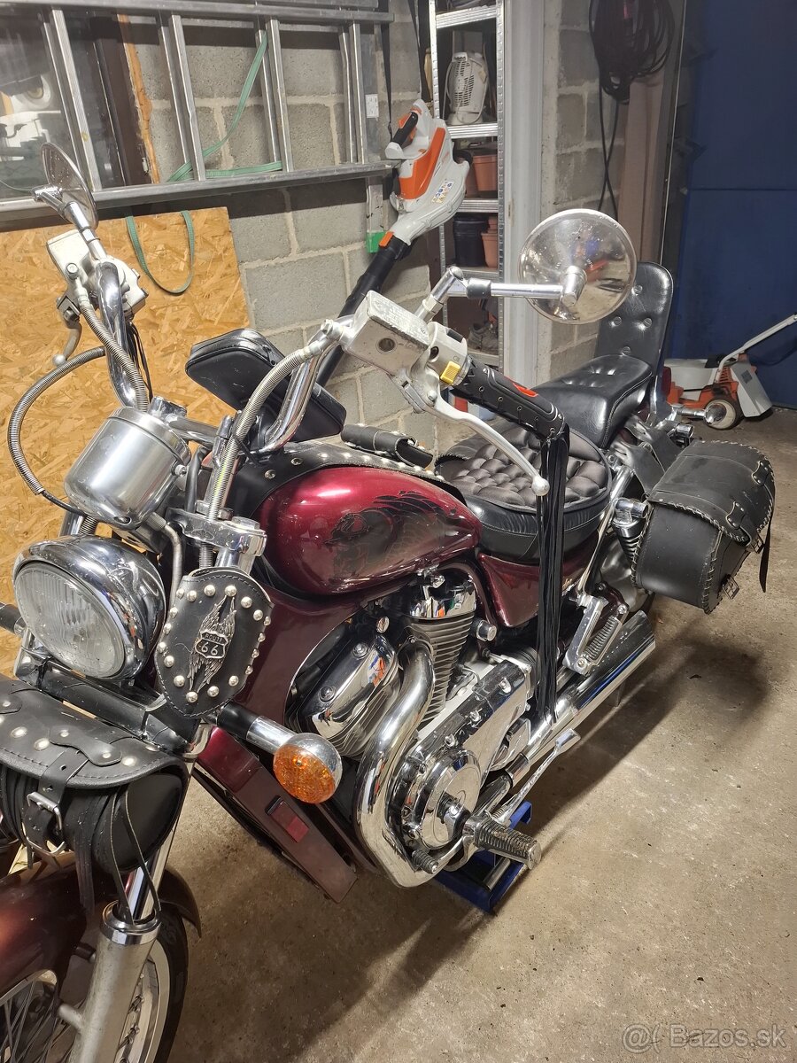 Na motorke je ladeny vyfuk Vance&Hines, vzduchovy filter K&N, chromovy padaci ram, chromove driaky brasni + k motorke su plastove kufre a velky stit Batwing.