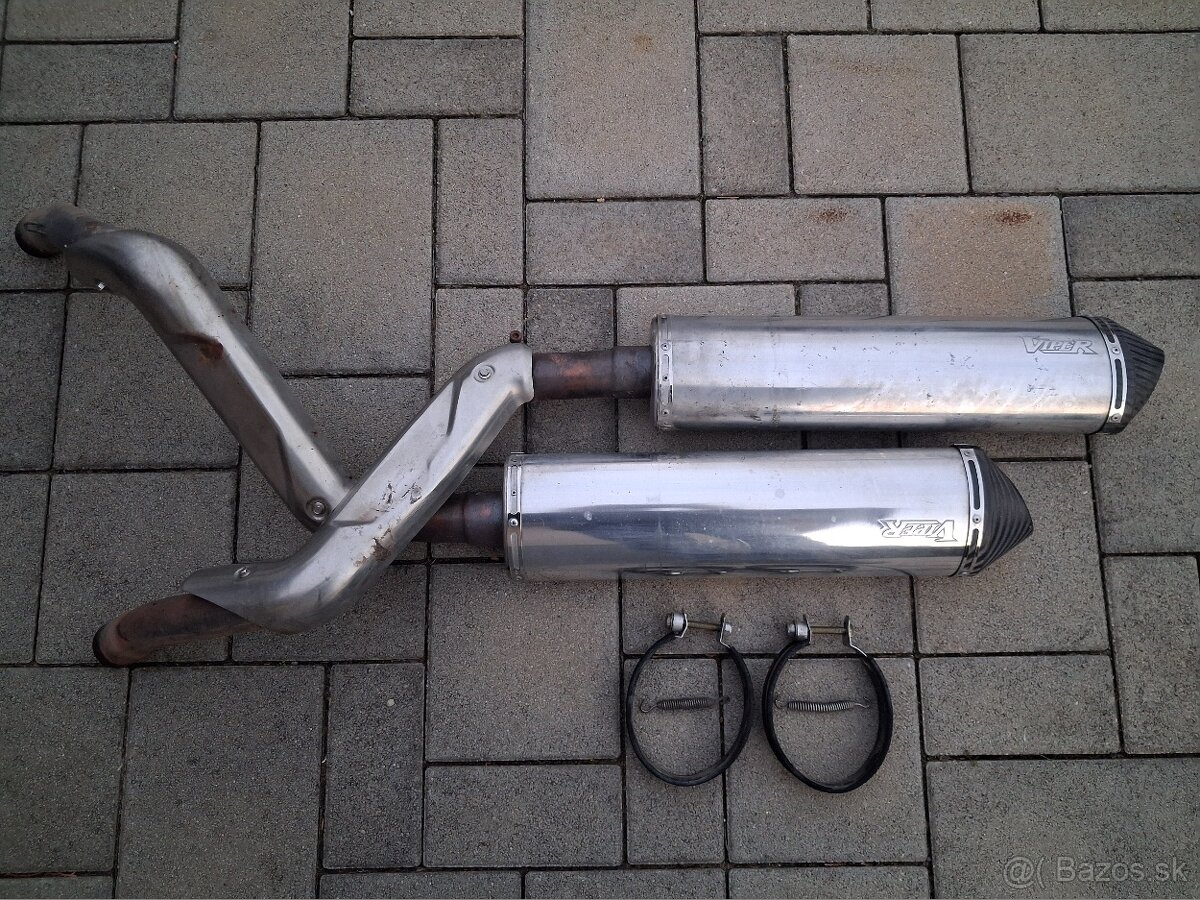 Ladené výfuky VIPER s DB kilermi, boli na Aprilia 1000 Caponord, cena za kus 120eur, predaj spolu cena 200eur, po úprave použiť aj na iné moto, osobný odber Nitra.