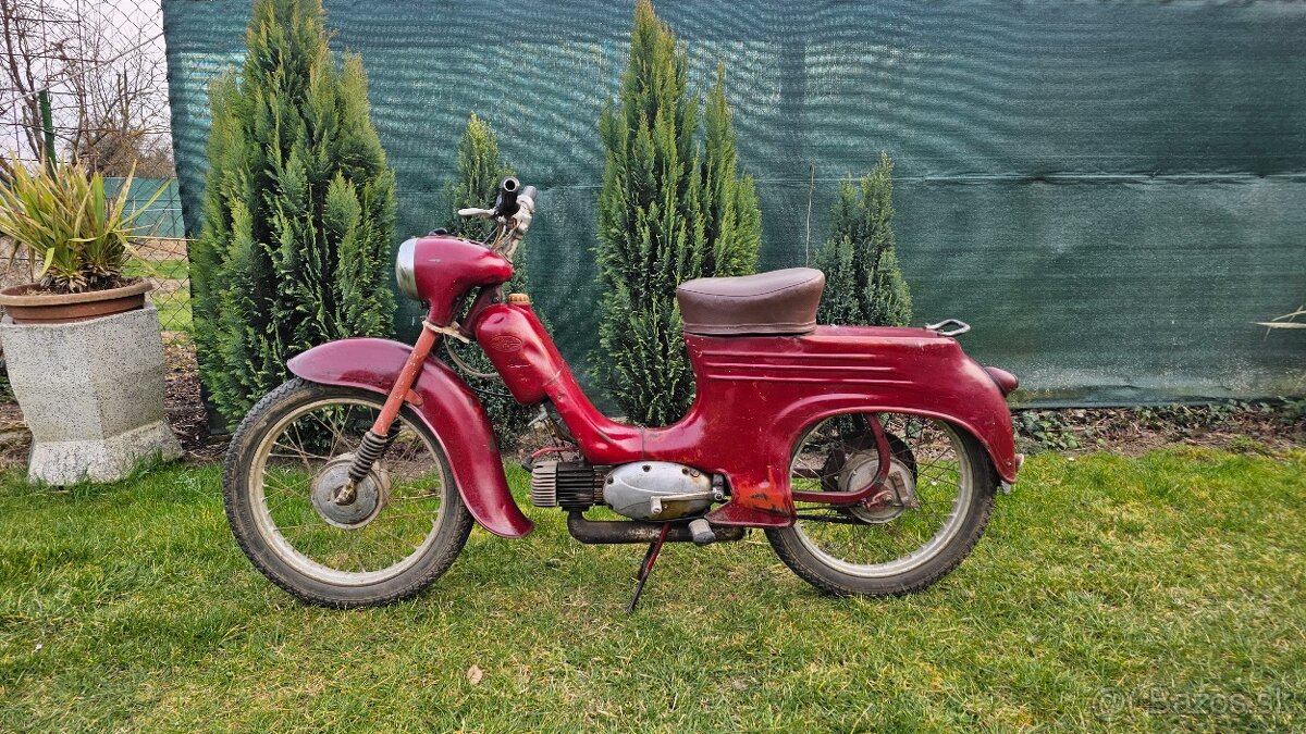 Jawa pionier 21 - [24.3. 2026]Predám jawa pionier v nalezovom stave, mám ho už vyše 5 rokov odložený v garáži. Tak ako som ho priniesol aj stojí. Stav ako na foto. Má pôvodný čitateľný štítok a aj ŠPZ. Možnosť opätovného prihlásenia na papiere. Cena 500€. Pre viac info volať. Lokalita Rišňovce
