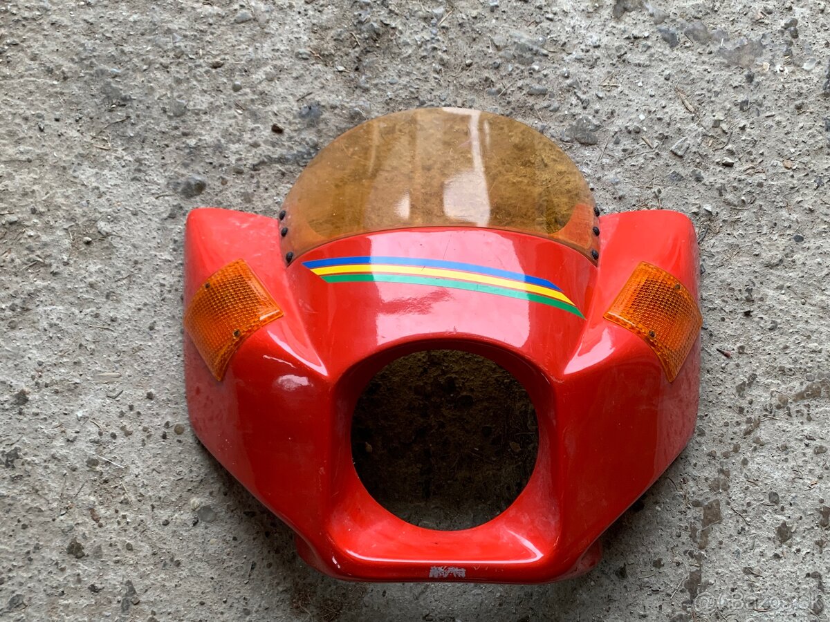 Predám novú dobovú masku na veterány Jawa, ČZ, MZ. Ešte nikdy nebola montovaná na motocykel. Spolu so smerovkami a plexištítom.