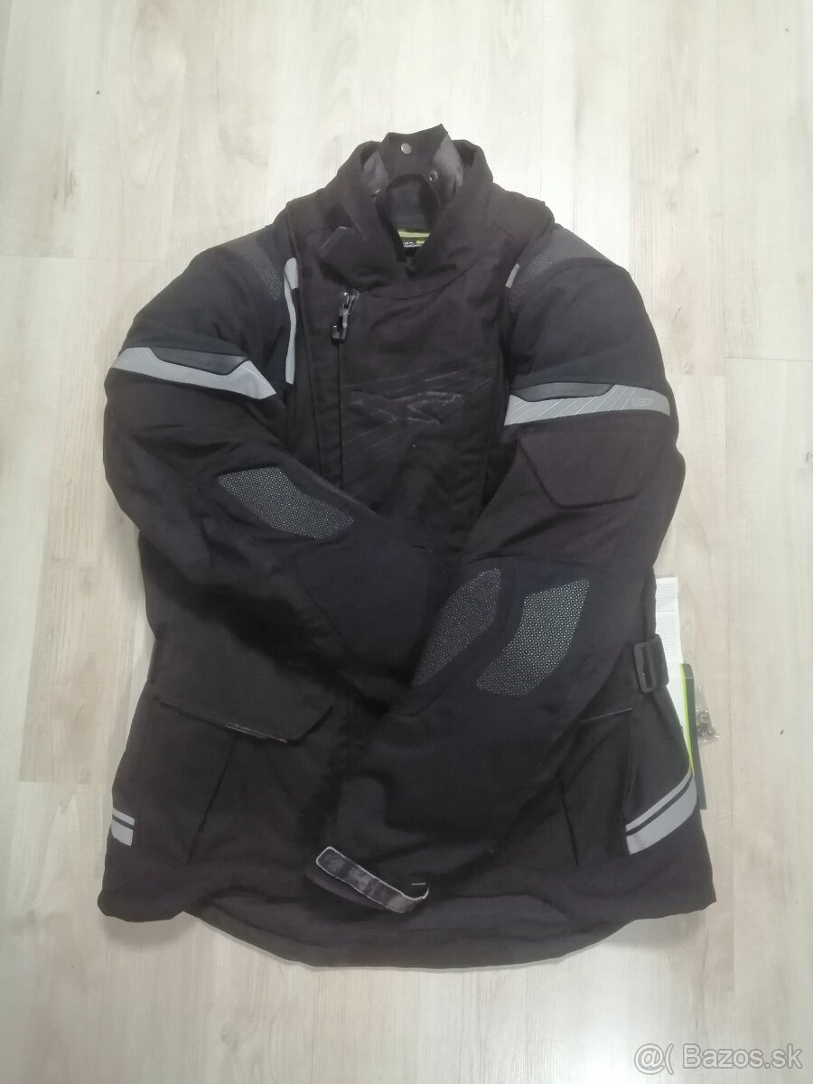 Predám textilnú moto bundu MACNA veľkosť M, bunda je trojvrstvová, má nepremokavú termo vložku, po vybratí termo vložky slúži ako letná bunda. Bunda má chrániče ramien, lakťov a chrbta. Rozmery : predná strana meraná pri zipse bez goliera je 57 cm, zadná strana bez goliera 75 cm, hrudník 104 cm, rukáv vnútorná dĺžka od pazuchy po manžetu je 50 cm, vonkajšia dĺžka rukávu 63 cm. Osobný odber v Bratislave v Petržalke. POZOR ! Bunda má natrhnutý kúsok na rukáve, je veľmi ťažká a ako som ju chytila tak sa mi to utrhlo. Kontakt 0918164124 katy4821k@gmail.com